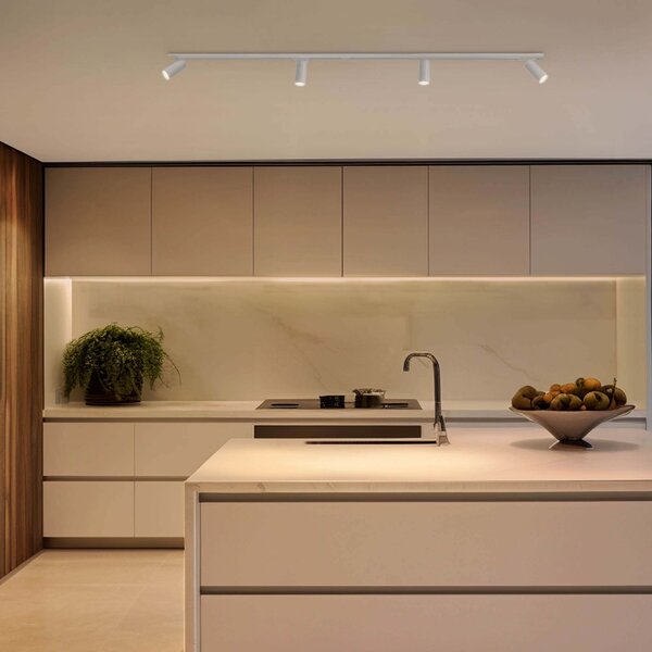 Ce système de spot sur rail offre une flexibilité inégalée et est facile à ajuster ou à étendre avec des spots et rails supplémentaires. Idéal pour une galerie d'art, où vous devez souvent déplacer l'éclairage pour de nouvelles œuvres, ou dans une cuisine où vous pouvez ajouter des spots pour un meilleur éclairage du plan de travail.