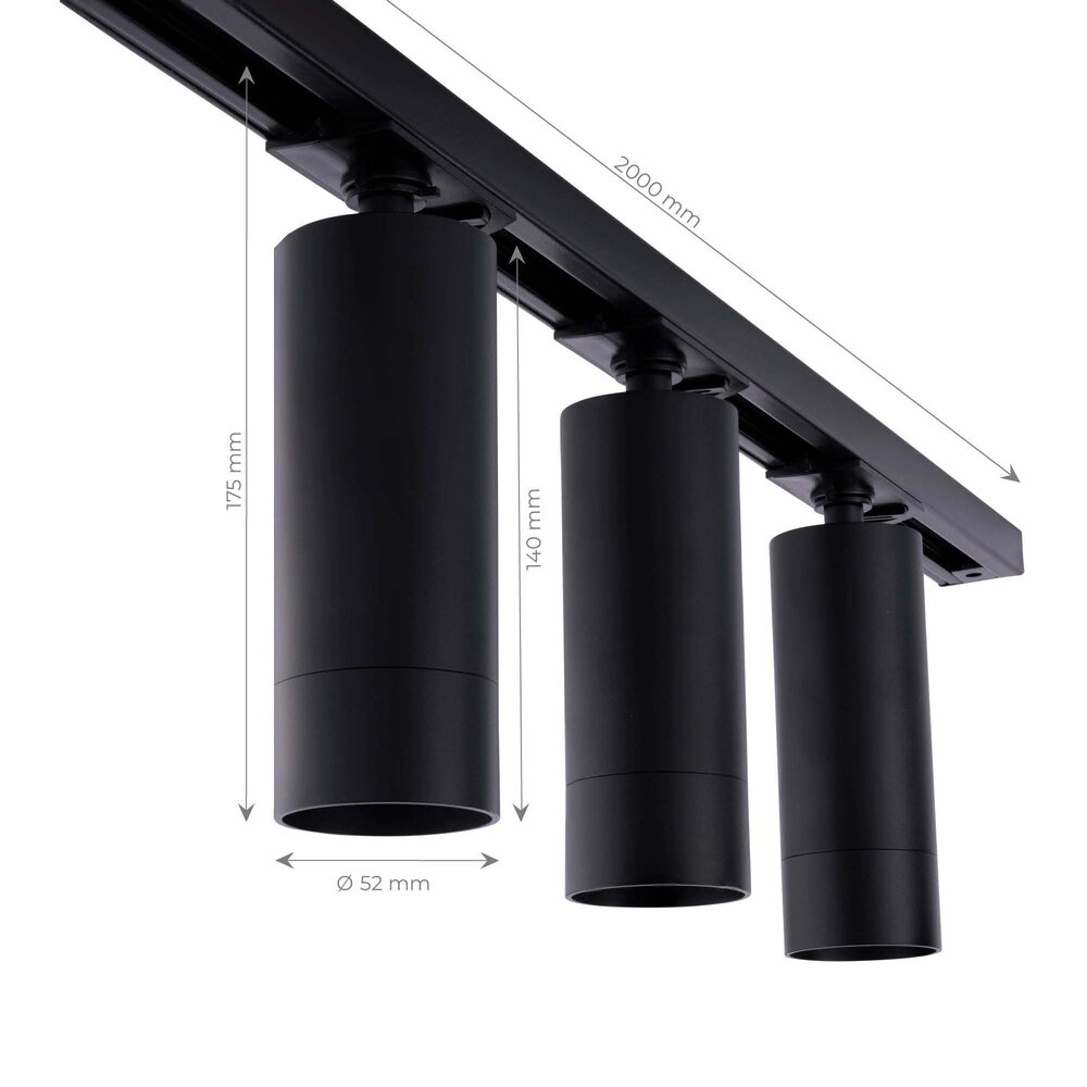2m LED Spot sur rail - 4 Luminaires - 3W - 2700K - Dimmable - Rail Monophasé - Noir