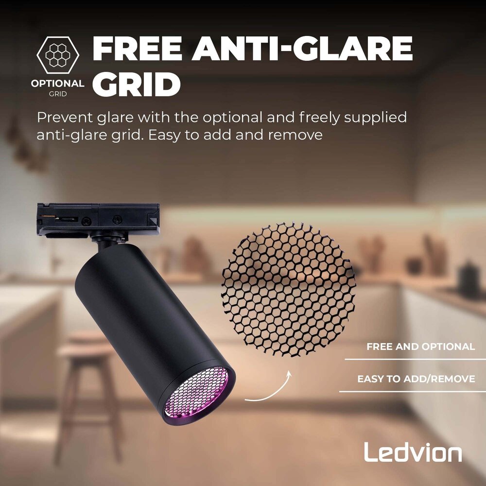 Pour améliorer encore le confort de votre éclairage sur rail, vous pouvez utiliser la grille anti-éblouissement fournie gratuitement. Cette grille est inclinable à 350 degrés, vous permettant de diriger la lumière précisément sans éblouissement. Elle est facile à ajouter et à retirer, vous assurant ainsi un éclairage optimal sans gêne pour les yeux.