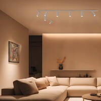 Ce système d'éclairage sur rail offre une flexibilité inégalée et est facile à adapter ou à étendre avec des spots et des rails supplémentaires. Idéal, par exemple, pour une galerie d'art où l'éclairage doit être déplacé régulièrement pour de nouvelles œuvres d'art, ou dans la cuisine où vous pouvez ajouter des spots sur rail supplémentaires pour mieux éclairer le plan de travail.